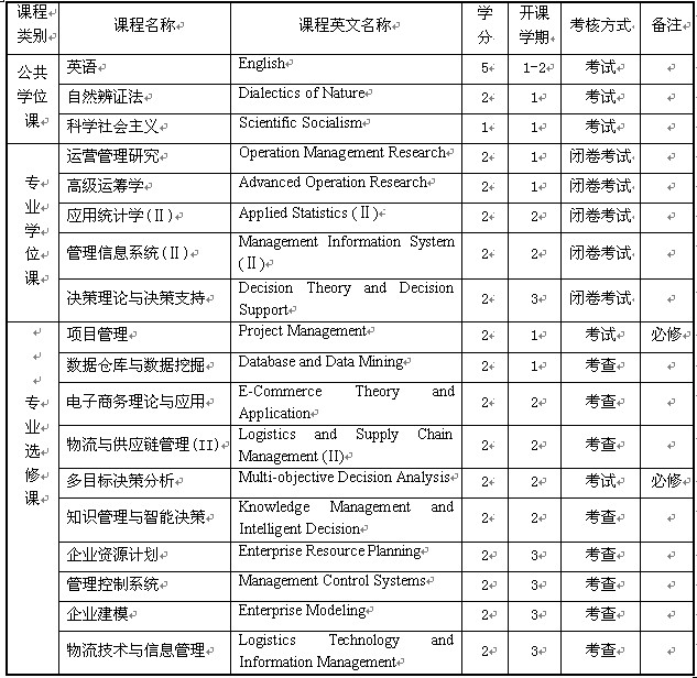 3. 非本专业考入的研究生须补修本科课程2门:《管理信息系统》(3学分),《运筹学》(3学分),其学分不计入总学分。