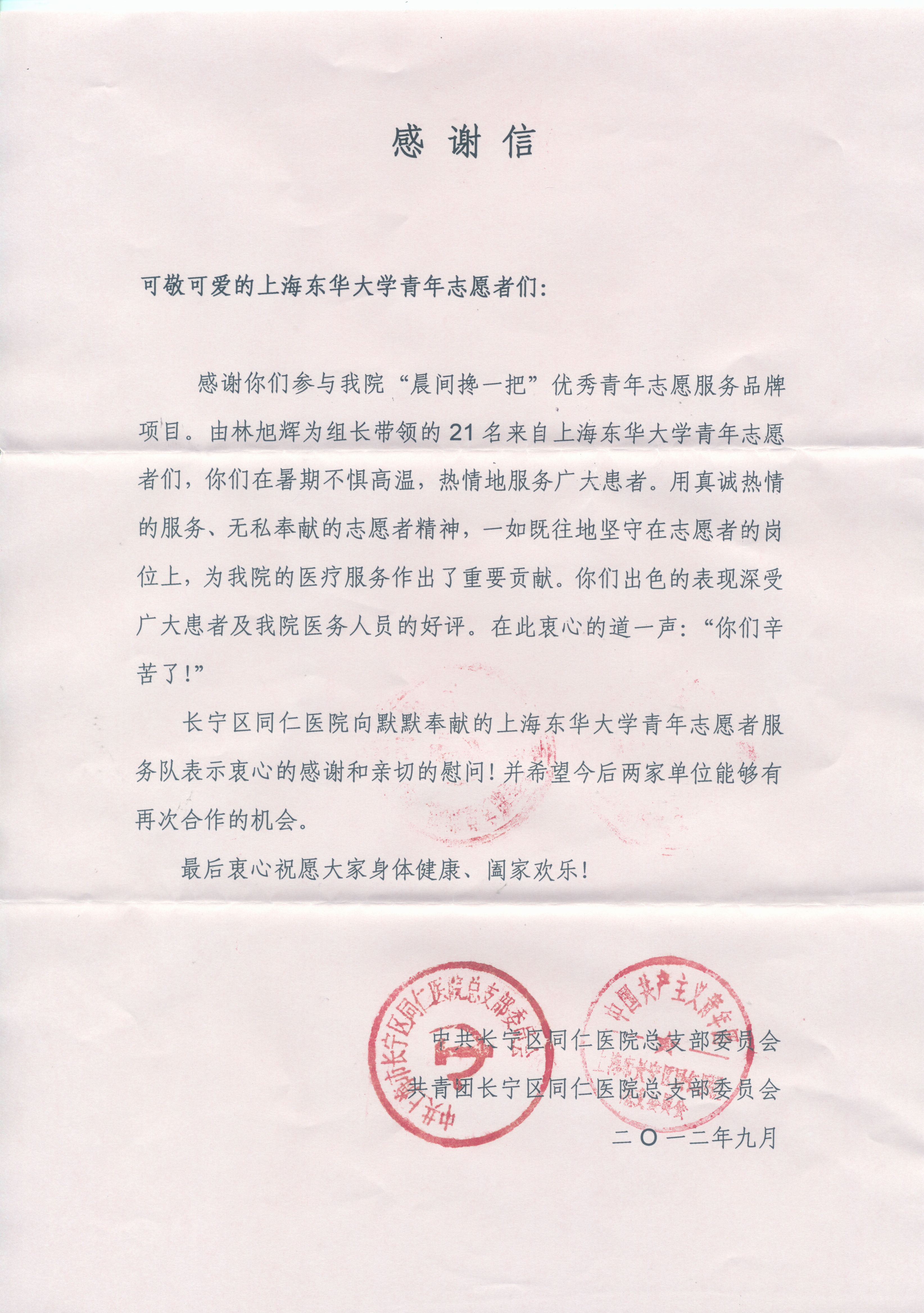 同学们细致周到,给前来就诊的病患带来就医的便利帮助,更送上了心灵的慰藉和温暖,充分发扬了东华大学学子的精神风貌,获得了医院和病患的一致好评,同仁医院先后两次向澳門漁人码头 发来感谢信,高度赞扬了东华学子的奉献精神。
