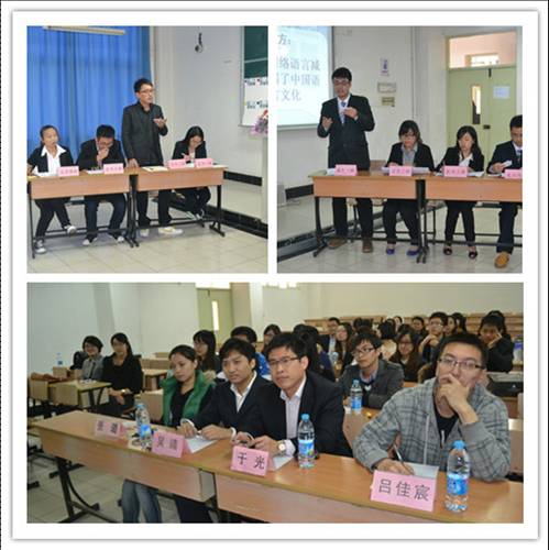 首先,进行的是辩论赛决赛。在决赛过程中,双方围绕“网络语言丰富了中国语言文化还是减弱了中国语言文化”这一辩题展开了精彩的辩论。研会二组和四组代表队分持“网络语言减弱了中国语言文化”和“网络语言丰富了中国语言文化”的观点。在双方简明扼要的陈词后,辩论进入紧张而又精彩的攻辩和自由辩环节,二组代表队慷慨激昂、思维严谨,以简明的语言诠释高深的道理。四组代表队通过引用当下流行的网络语言来印证网络语言对中国语言文化的丰富性。双方稳而不乱,幽默风趣而又条理清晰,妙语连珠的表现赢得观众的阵阵掌声。总结陈词阶段,正反双方四辩分别针对辩论会整体态势进行了总结,其陈词层次分明、条理清晰、准确流畅的证实本方观点,为抨击对方观点提出有力论据。接着,吴靖老师就关于此次辩论赛中存在的一些问题进行了总结,给出了建议并表达了他的殷切期望。最后,经过一番比拼,研会二组获得本次比赛的冠军,其中高恒正获得“最受欢迎辩手”称号,聂新宇获得“最佳辩手”称号。