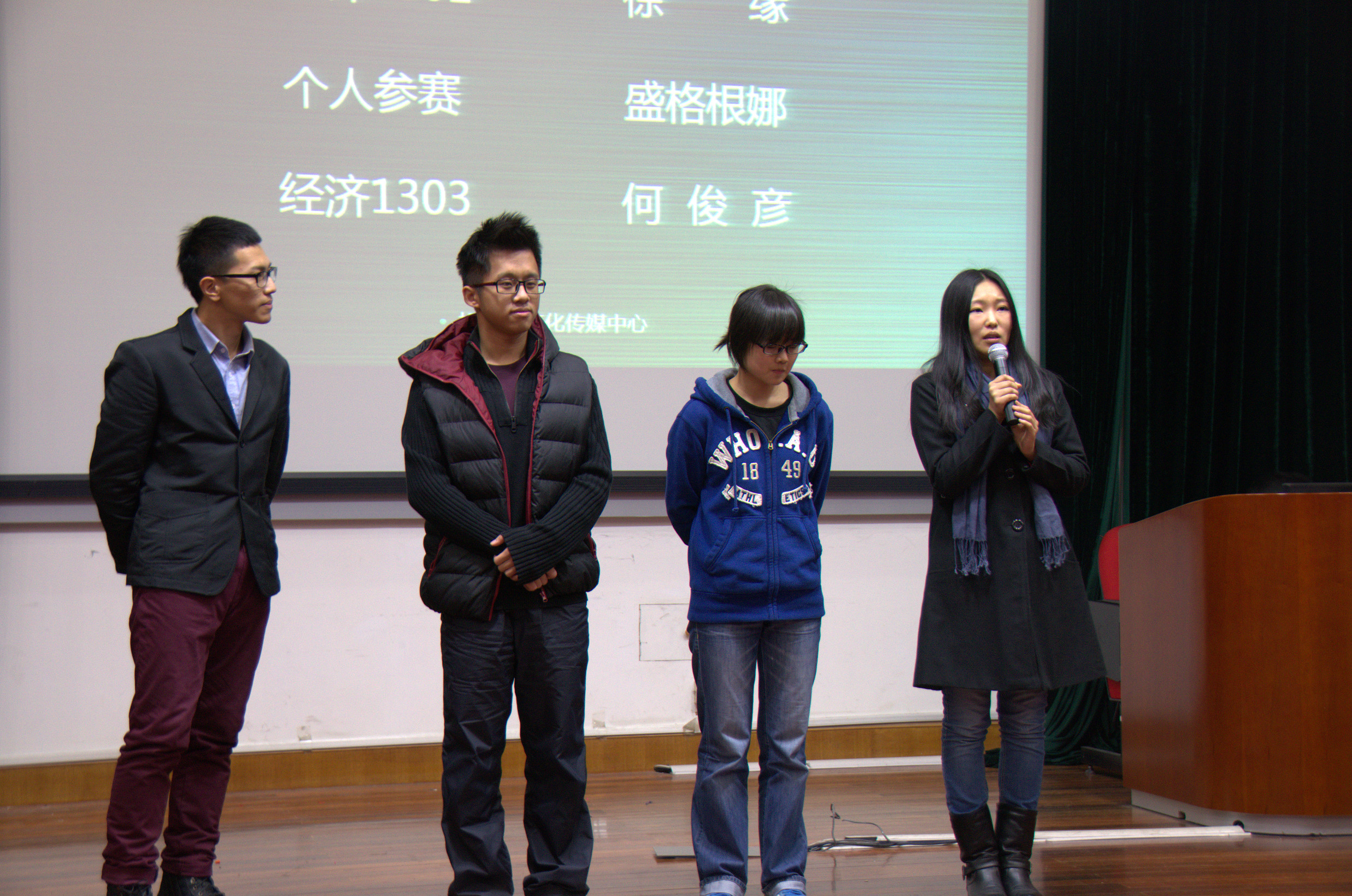 活动开始用一段以全球各大电影公司及电影节为素材的串联视频将全场引入电影世界,颁奖典礼在这种绚丽奇妙的氛围中拉开了帷幕。三位老师进行致词,对参赛同学给与了鼓励,同时表现出对大赛评选作品充满了期待与信心。经过前期组委会的评审,《青春game》《时光不老,我们不散》《One Day》《不落幕的青春》《成长的代价》等作品均成功入围。首先颁布最佳男女演员,最佳男演员获奖者是来自会计1301《不落幕的青春》的徐缘,最佳女演员获奖者是来自个人参赛《时光不老,我们不散》的盛格根娜,在其后最佳导演中盛格根娜再次获奖,最佳后期是来自经济1301蔡玉娇凭借《青春game》夺得。前四项个人大奖颁布完毕后,十大复赛入围歌手黄文婷为大家演唱了王若琳的《i love you》,赢得现场一片掌声。在这短暂歇息后,活动马不停蹄的开始了人气奖与最佳微电影奖项的公布。根据网络投票结果,管科1301《我的青春有你相伴》摘得此最佳人气桂冠;而后根据评委评鉴,《时光不老,我们不散》《One Day》《青春game》三部作品入围最佳微电影提名,三部影片在现场放送后,现场的观影者们化身大众评委与老师们一同参与最佳微电影奖的投票打分,根据最后投票分数,最终确定《青春GAME》获得本届最佳微电影殊荣。