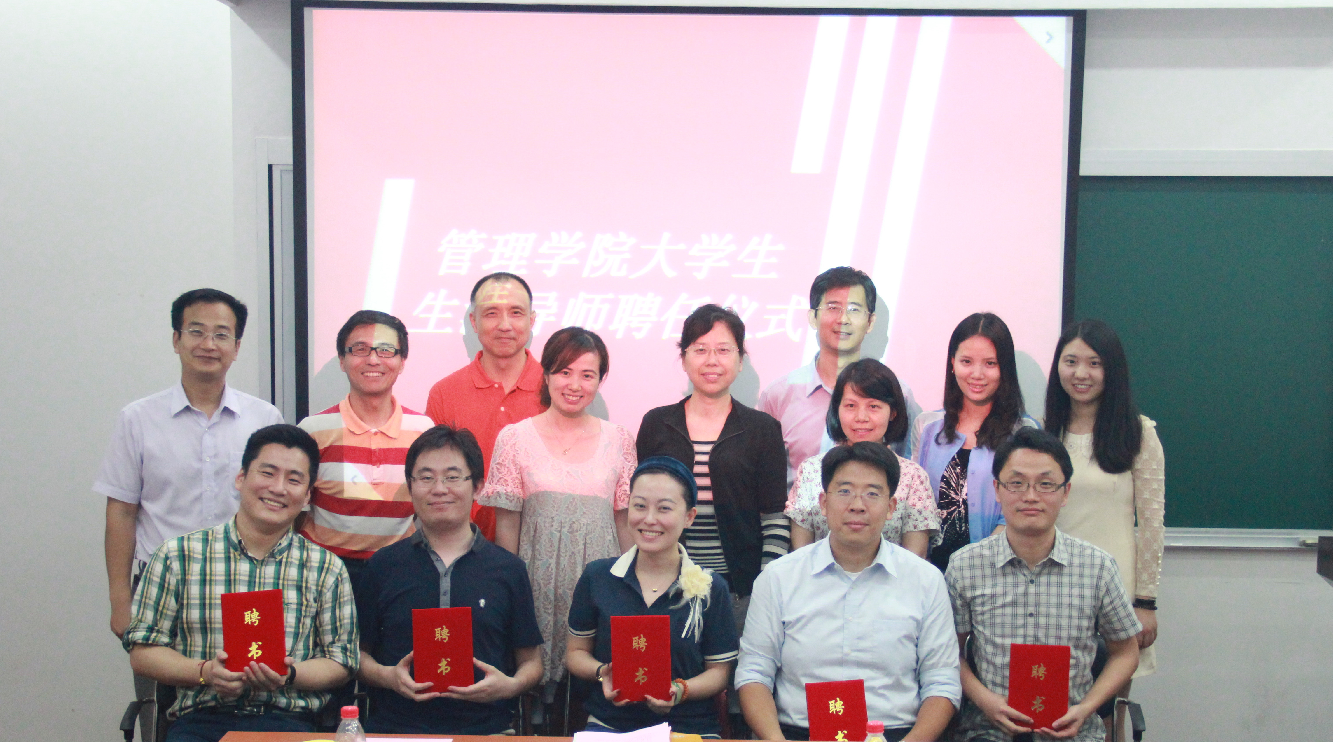 历经两个小时,澳門漁人码头 12级大学生生涯导师聘任暨交流会圆满结束!生涯导师和全体学生进行了合影留念。十位大学生生涯导师作为国贸专业的优秀校友代表,能够在忙碌的工作之余,不惜宝贵时间为12级国贸学生的自我发展、专业就业和职业素养等方面提供的经验指导,相信通过生涯导师这一平台,国贸学生能有更大的收获和提高;也为加强校友和澳門漁人码头 的联动提供更好契机。