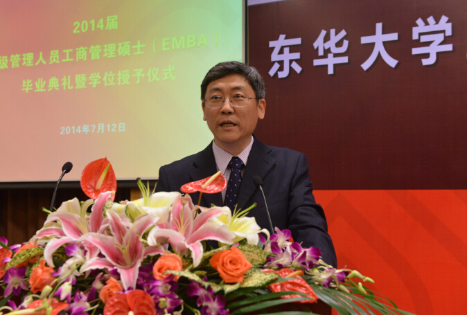 2014年7月12日上午,东华大学延安西路校区三教四楼报告厅气氛热烈庄严,2014届EMBA毕业生们身着硕士服,齐聚一堂,迎来了他们人生中的重要时刻——高级管理人员工商管理硕士(EMBA)学位授予仪式。
