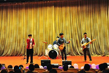 在观看了精彩的视频《high!大学》和《辅导员寄语》之后,本次文艺晚会正式拉开了序幕。在一阵阵吉他音的弹奏之后,一支由大二学生组成的ESTA乐队率先登场,劲爆的音乐瞬间点燃全场氛围。随后,经济1403的同学带来了一首《蜗牛》唱出大一新生对于大学的四年要一步一个脚印走完,踏实地完成学业的决心。正如歌词中唱到的“小小的天有大大的梦想……总有一天我有属于我的天”,这正是每个莘莘学子的渴望与信仰。