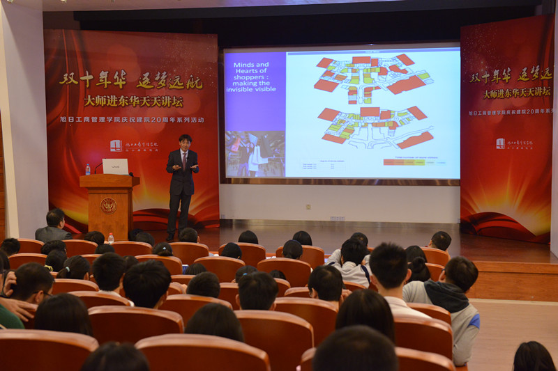 2014年10月16日晚18点30分,旭日楼400报告厅上演“双十年华 逐梦远航”大师进东华天天讲坛第四讲:中国商业地产的现状和前景——创意改变竞争力。主讲人佘耀庭博士,为法国亚诺集团及路威酩轩(LVMH)集团所组成LRE房地产基金于大中华地区的房地产投资组合合伙人。他曾担任美国波特曼集团中国区董事总经理及和记黄埔地产集团上海及华东地区总经理。佘耀庭博士拥有超过20年的中国,香港,新加坡和吉隆坡甲级写字楼,酒店,酒店式公寓,别墅,住宅公寓以及商场的投资和资产管理经验。第四讲的听众由澳門漁人码头 和服装澳門漁人码头 的在校学生、历届校友和部分教师代表组成。