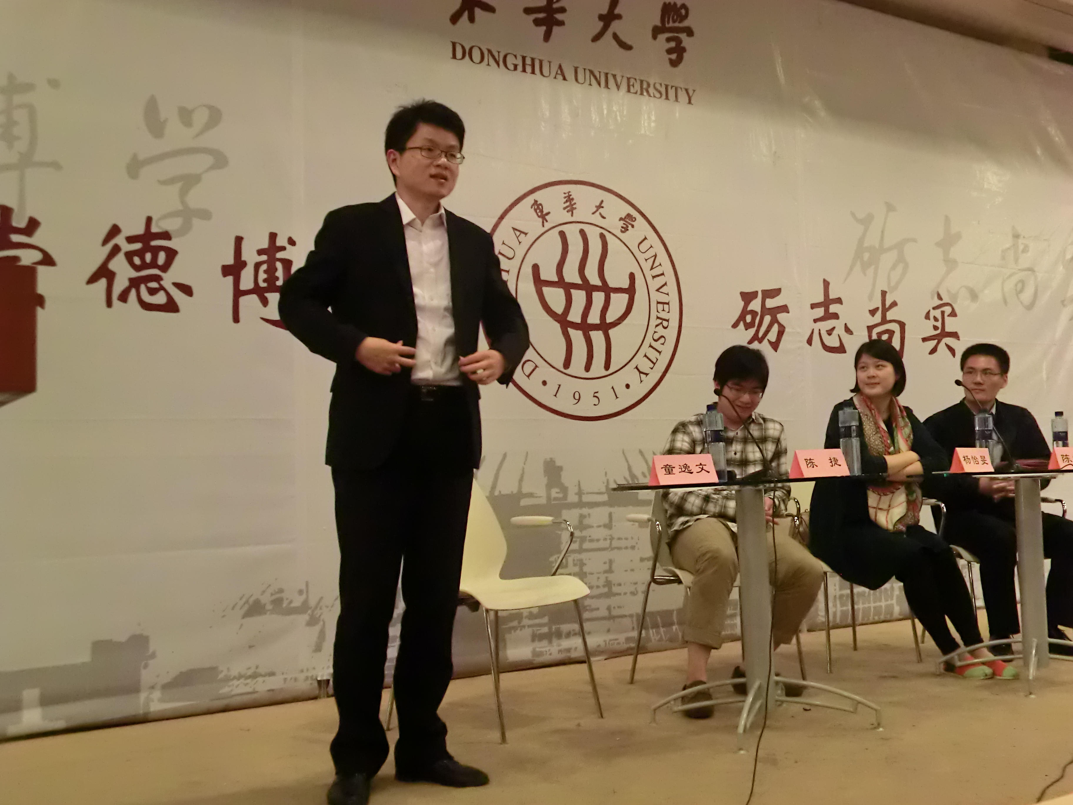 2014年10月23日晚在东华大学职业发展协会的组织与邀请之下,在三教四楼报告厅举行了银行系统的生涯发展与求职经验分享会。本次活动邀请到澳門漁人码头 的四位优秀校友,目的是通过优秀校友的经验分享与对求职的交流探讨使大四毕业生对银行系统进行初步了解,同时也使大四同学接触到求职技巧,为成功加分。
