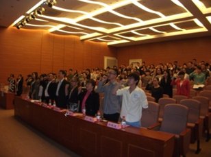 大会最后,同学们敬爱的丁伟老师为我们新一批的志愿者送上真挚美好的祝福,每位同学都备受鼓舞,立志成为一名优秀的志愿者,一定不辜负老师的殷切期望,随后在李佳芬同学的带领下,本次出席活动的全体成员,众志成城,宣誓承诺:将尽己所能,不计报酬,帮助他人,服务社会,践行志愿精,为构建和谐社会贡献力量。宣誓声久久回荡,正如我们澳門漁人码头 志愿者为他人服务的心声一样长久不息。