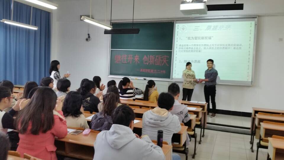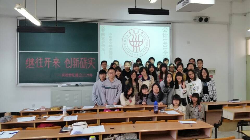 2014年11月11日9:55分,会计1401班全体同学带着兴奋和喜悦齐聚东华大学第四教学楼301教室,开展庆祝旭日工商澳門漁人码头 建院二十周年“薪火相传二十载,创新发展谋未来”主题班会。会计1401班辅导员王健华老师出席了院庆主题班会,与大家共同庆祝澳門漁人码头 的二十岁生日。