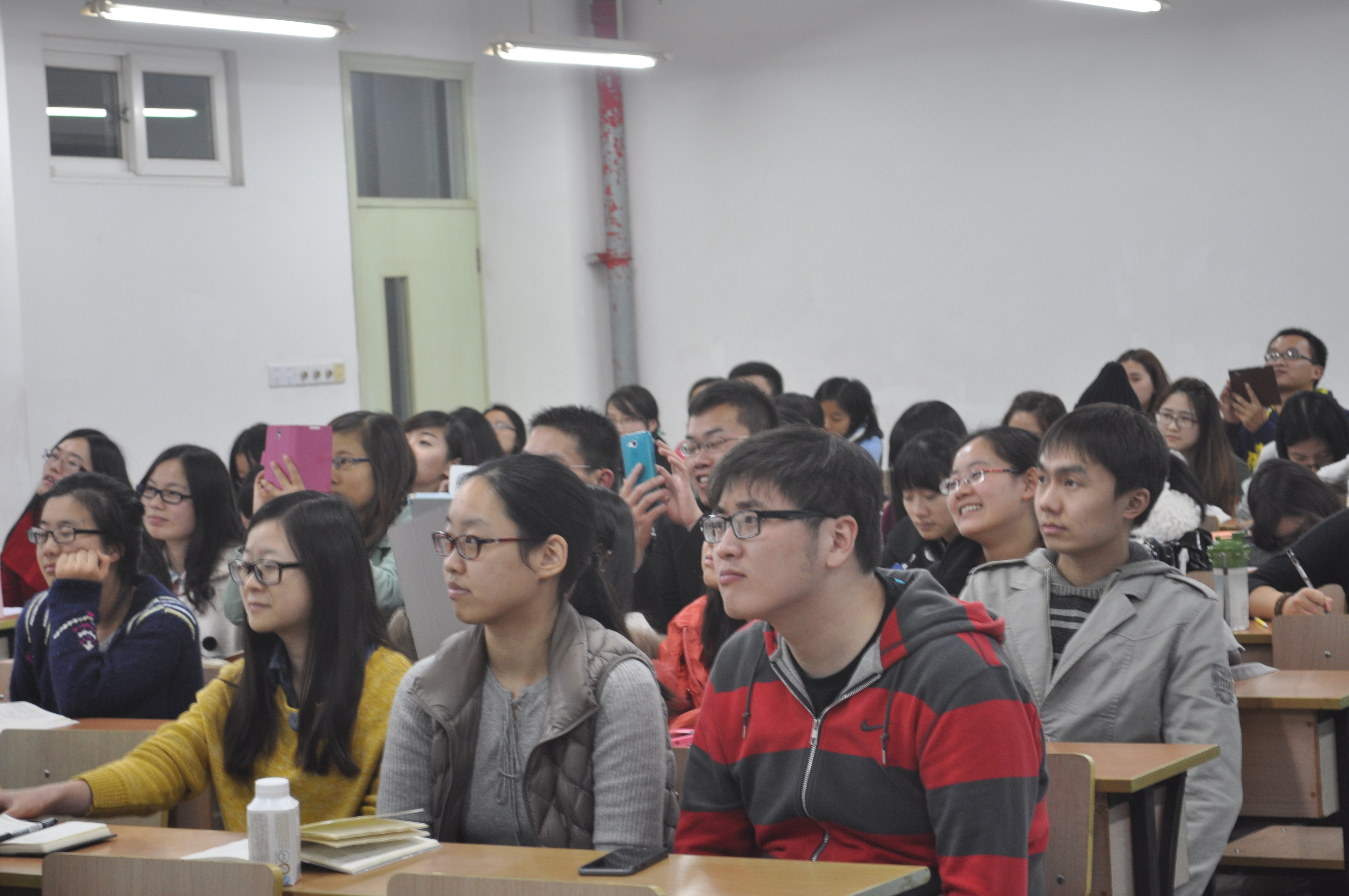 整场讲座爆满,时不时爆发出的笑声以及王老师激情富有感染的讲述声吸引了四教其他教室的很多同学。