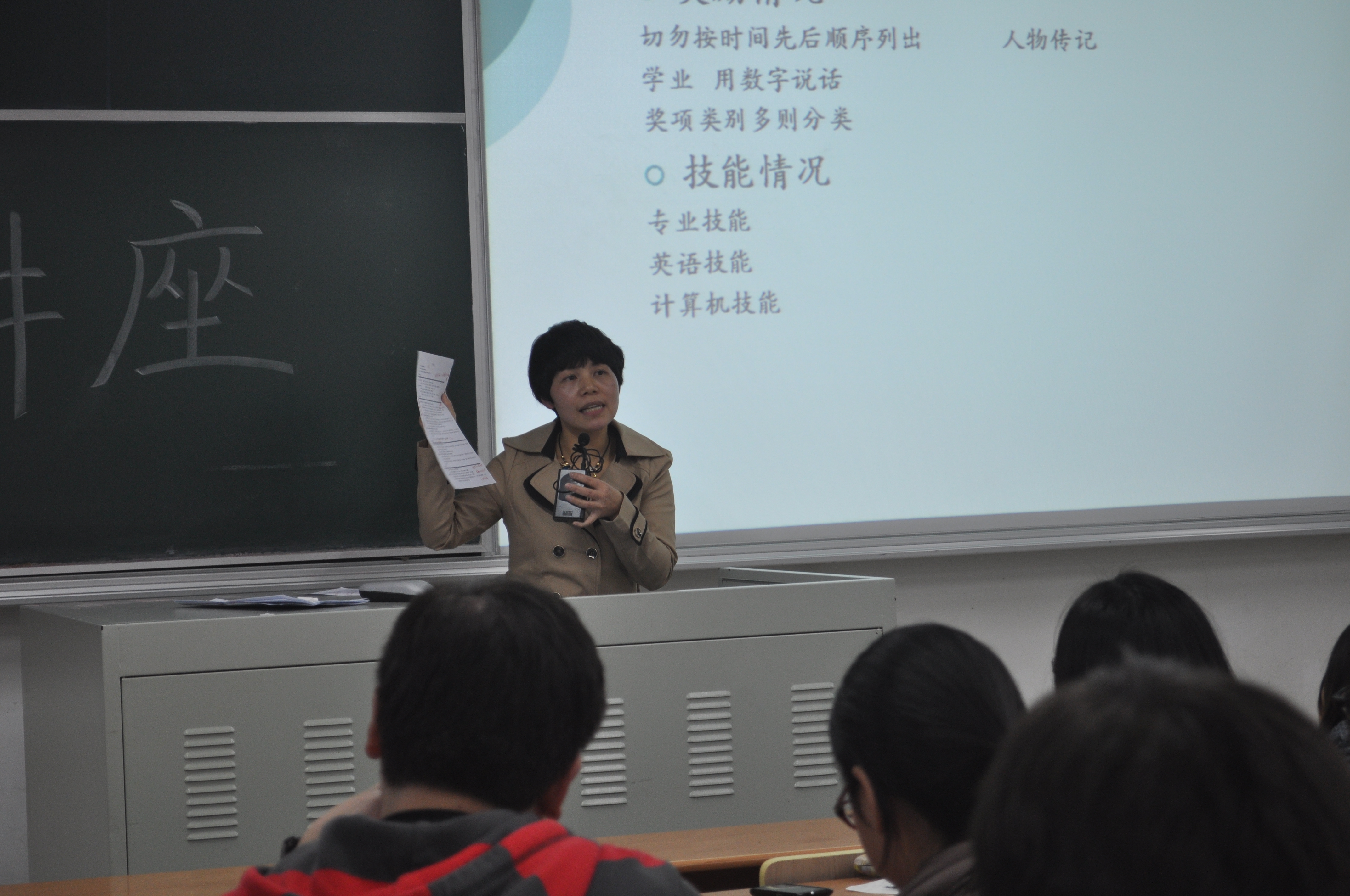 2014年11月19日18:30澳門漁人码头 研究生会举办的职场系列讲座在四教110举行。讲座邀请了彩虹人生工作室福怎、多年主管就业工作的王丽华老师,就应该如何根据应聘岗位做简历、如何应对面试等等问题进行了非常详细的讲解。
