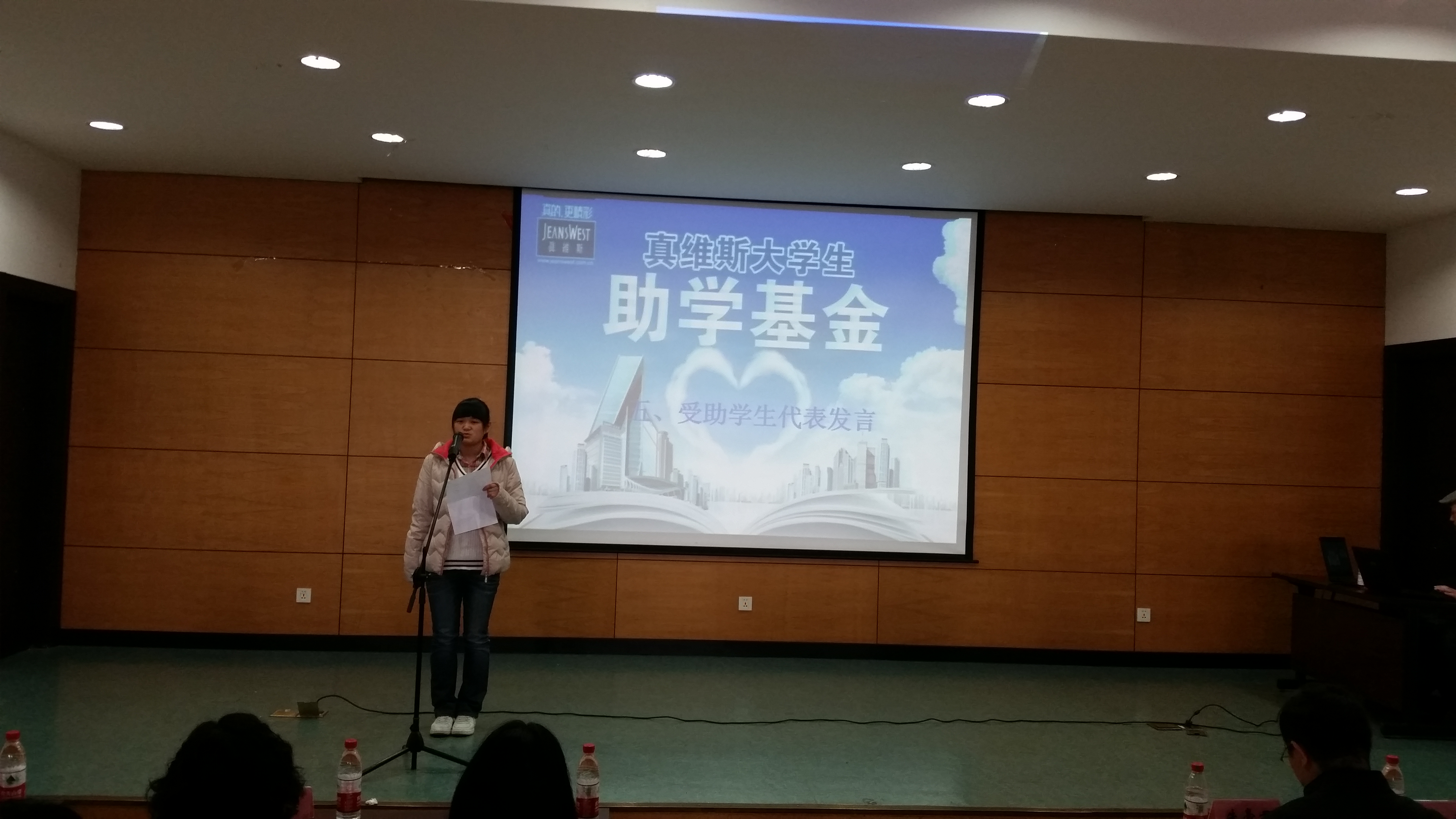 仪式伊始,由主办方主持人介绍出席嘉宾,并由嘉宾为我们本学年真维斯助学金获得者颁奖。随后,澳門漁人码头 陈宁芳同学作为东华大学受助学生代表上台发言,发自肺腑的感谢和真真切切地体会感动了在场所有人。最后,真维斯人事处的负责人为我们本学年新获得助学金的同学进行岗前培训,力争让受助学生将来进入真维斯店铺实习打下良好的基础。