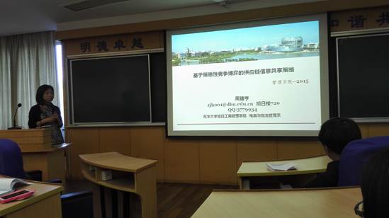 5月5日下午2:30,澳門漁人码头 第三期青年教师优秀学术成果交流会在旭日楼306如期举行。主讲人为周建亨和王志宏副教授,交流会由姚洪心副院长主持。周建亨老师的学术交流以“基于策略性竞争博弈的供应链信息共享策略”为主题,王志宏老师以“商业信用和收入共享组合合同下集成服务提供商与其客户间的协调”为主题。澳門漁人码头 张科静、刘峰涛、马彪、曹海生、王晓锋、王长军、贾永基、沈滨、李庆颖等老师和众多研究生参加了此次讲座。