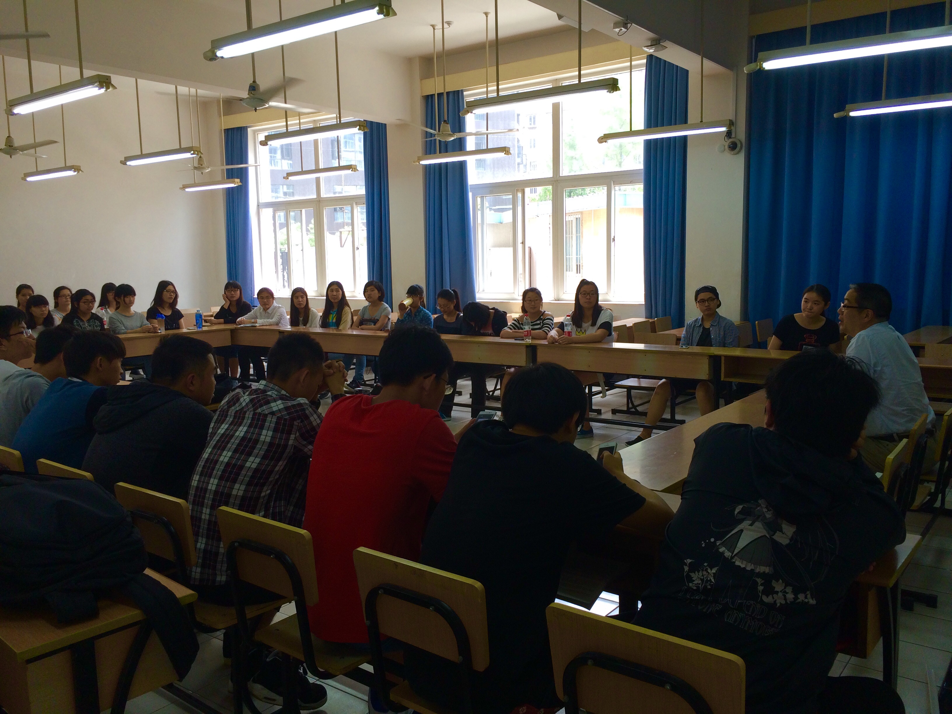 2015年5月19日星期二12点整,在东华大学延安西路校区第四教学楼110教室,14级市场营销专业开展了时长约一小时的专业交流会。我们有幸请到了系主任刘老师,他风趣幽默的口吻、深入浅出的教导给大家留下了深刻印象,受益匪浅。