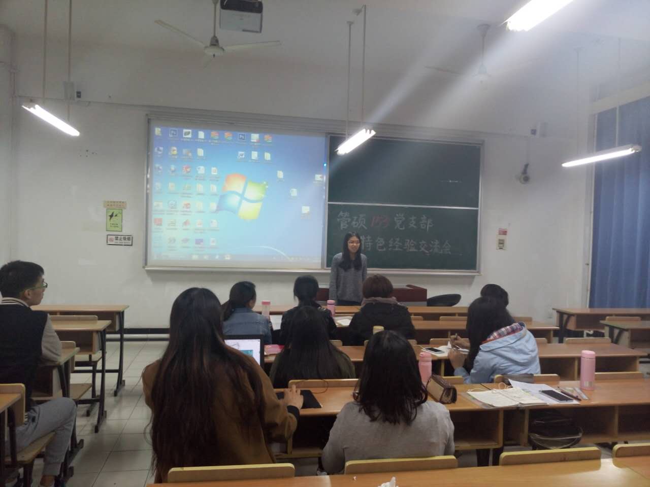 2016年4月27日晚上6点30分,管硕153党支部于四教104进行了4月份组织生活会。本次组织生活会采用了很特别的方式,以“分享经验,携手成长”为主题,部分优秀的党员进行了经验分享。这次组织生活会突出了我支部的特色,进行了创新,大大不同于以往的形式。
