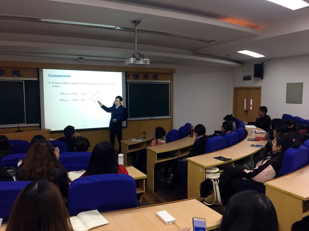 12月14日上午,应旭日工商澳門漁人码头 电子商务与物流管理系邀请,中南财经政法大学工商澳門漁人码头 董慈蔚副教授在旭日楼306作了题为“Does Omnichannel Selling with Pre-Order Benefit a Retailer in the Presence of Strategic Consumers?”的学术讲座。本场讲座由沈滨老师主持。