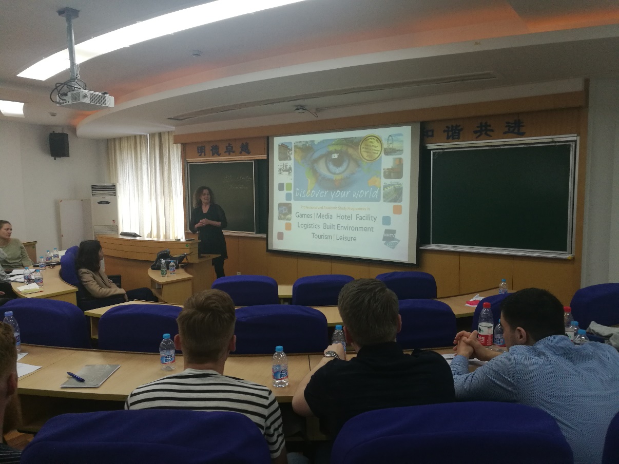 短短几个小时,双方师生用英语进行了顺畅的交流,我方在热情接待的同时也感受到了荷兰布雷达大学师生们的热情和友善。东华大学和荷兰布雷达从2016开始建立了本科生交换项目,本次交流为双方学生提供了机会互相交流并感知不同的生活。学术不分国界,大家在交流中互相取长补短,共同推进整个世界的旅游业发展!
