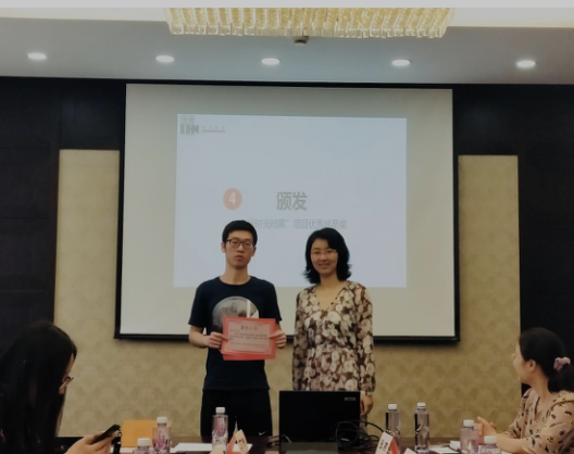 (沈洁老师向学生代表颁发“东华时光档案”项目突出贡献奖,丁怡老师向学生代表颁发“东华时光档案”项目优秀成员奖。)