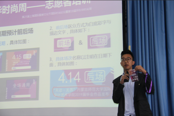 培训会上,首先邀请丁伟老师介绍本次时装周及志愿者概况。其中,集体行动、听从指挥是丁老师提及的两个关键词。尽管志愿服务地点距离澳門漁人码头 不远,但均地处交通情况较为复杂的地段,志愿者要听从活动负责人及老师安排,统一集体行动。无论在论坛或是秀场,现场要保持联络。同时他强调,在长宁来福士等开放地点举办的活动,志愿者一定要注意饮食与财产安全,尽量只携带志愿活动必需品,做好自我防范,争取拥有一个愉快又增长见识的志愿服务体验。
