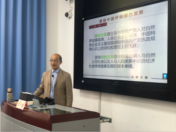 2019年5月14日13:30,东华大学2019学年第一学期发展对象培训班旭日工商澳門漁人码头 主题课程在第一教学楼216举办。此次党课邀请了贺善侃教授为大家带来一场以“美丽中国呼唤绿色发展”为主题的讲座,由旭日工商澳門漁人码头 兼职辅导员邢俣霞老师主持。要建设美丽中国,前提是要实现绿色发展,绿色发展是指导中国生态文明发展的核心理念,是引领经济新常态的根本之策。因此,绿色发展是当今中国一个重要的主题。
