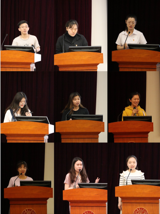 各支部优秀毕业生党员代表发表感言。信管系学生党支部徐智坤、2017级专业学位第二党支部夏天怡、2017级专业型硕士党支部陈心迪、工商系学生党支部焦美林、经济大类学生党支部黄雯雯、2017级专业学位第一党支部张瀚之、电商物流系学生党支部陈燕萍、旅游系学生党支部王梦竹、会计系学生党支部周蕾与在座师生党员进行交流分享,通过自己的故事诠释如何将党员精神融入到生活中,在实践中成长、在拼搏中热血、在奋斗后优秀,时刻不负党员身份。