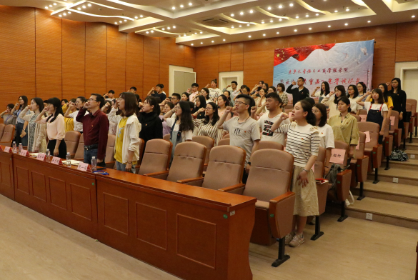全体党员在博士生党支部范丹丹同志带领下重温入党誓词,观看支部书记、毕业班老师和各支部已毕业学生党员的亲切寄语和真挚祝福。活动最后,党员们一起为在座六月加入中国共产党的同志们庆祝红色生日。