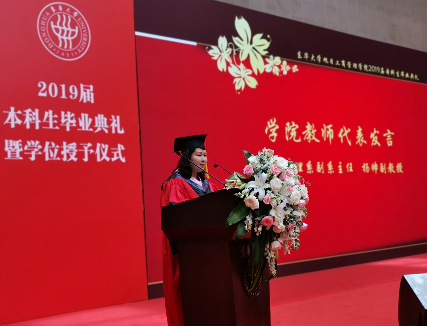 在毕业生家长发言环节,罗雨璇同学的家长感谢了东华大学四年来对女儿的栽培,表达了对2019届本科毕业生的热烈祝贺,并向为同学们的成长倾注热情、汗水和智慧的老师及校领导们表示衷心的感谢。现场还与同学们分享了几点人生感悟,如树立终身学习的理念,同时培养独立思考能力和独立人格,还要敢于坚定信念,追求自己所爱的事情。愿毕业生们奋勇拼搏,愿东华桃李芬芳。