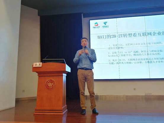 此外,骆老师从人力资源的视角,讲述了5G时代的人才需求。他指出,5G的低时延优势,将大大增加无人机、自动驾驶、自动生产以及其它更多领域的应用发展,由此需要大量开发、应用和服务人才。除此之外,在新零售革命趋势下,未来商业将需要更多的大数据和人工智能技术的新型人才。因此,他鼓励同学们多多钻研技术,形成自身独特优势。