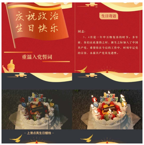 在宣誓代表管理171硕党支部王玮同学的带领下,全体党员起立,举起右手、攥紧拳头,面向党旗庄严宣誓,重温入党的诺言与初心。最后,澳門漁人码头 学生党建中心用特殊的“云蜡烛”为 3、4月份加入中国共产党的党员们庆祝他们的第二生日。