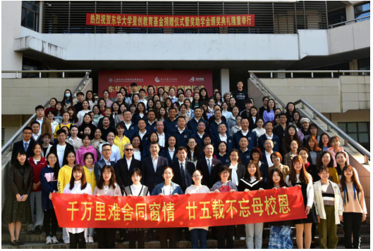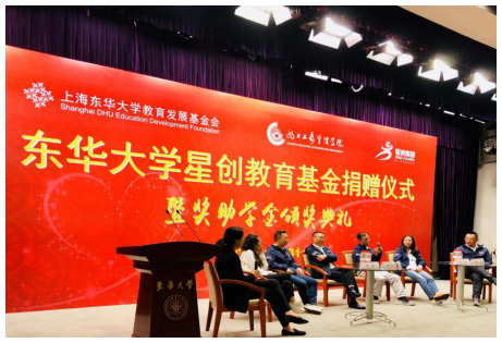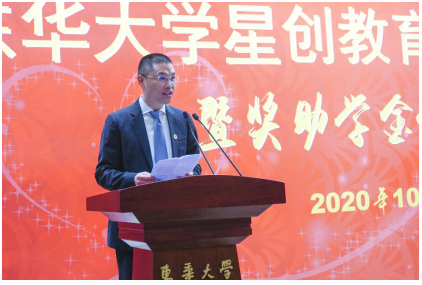 在捐赠仪式上,林德慧代表星创集团和工业管理工程91级校友讲话,他讲述了自己从学生时代到创业的艰程,并感念母校的培养,也感恩生命中的所有磨练,殷切期待学弟学妹们,能够把准人生航向,勤勉拼搏,将东华人“崇德博学砺志尚实”的精神发扬光大,成为有才学者、有信念者、有担当者。