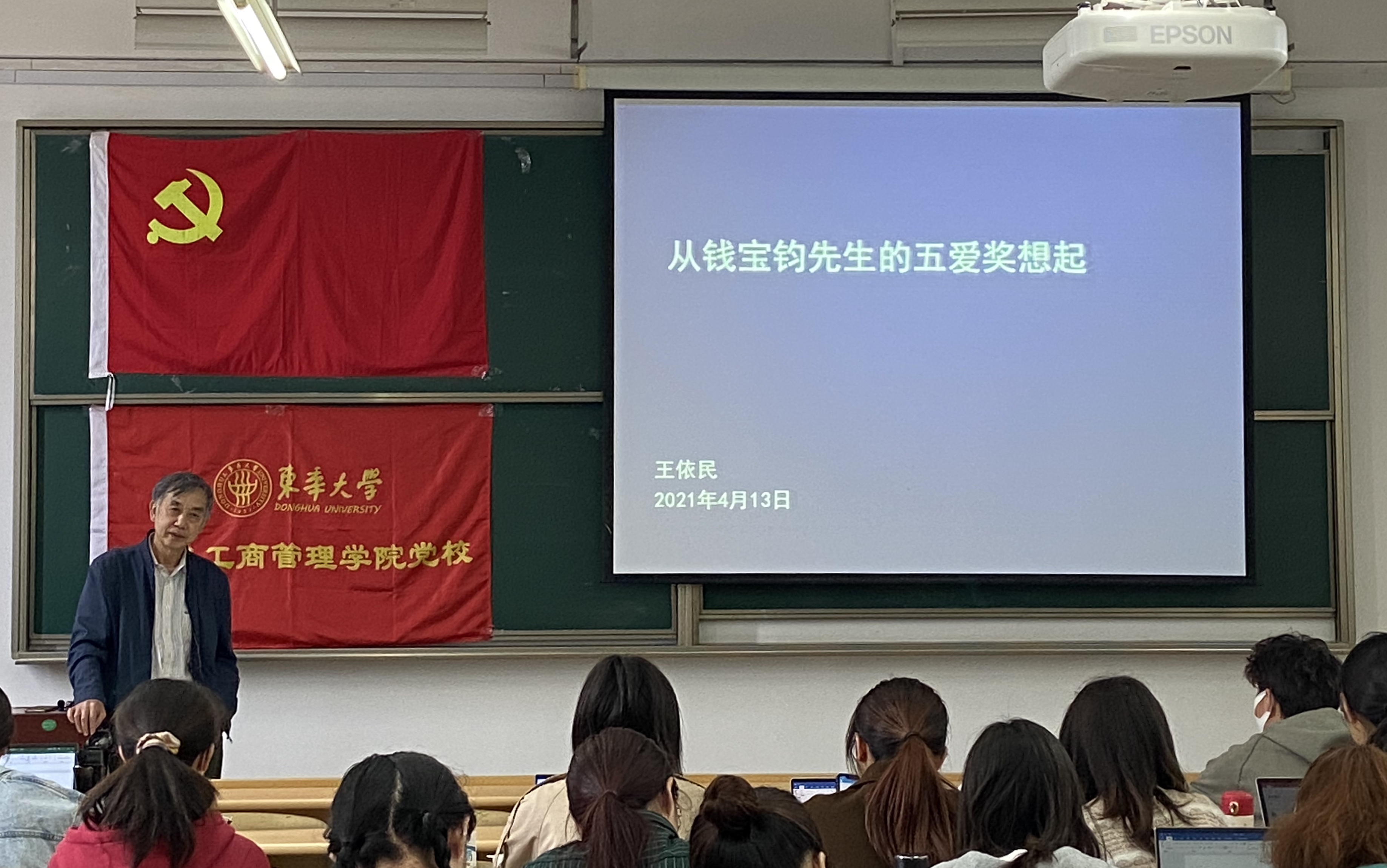 2021年4月13日13点,东华大学2021年澳門漁人码头 发展对象培训班主题党课于2教204展开,培训班此次邀请到王依民教授为学员们带来题为“从钱宝钧事迹讲起主题课程。
