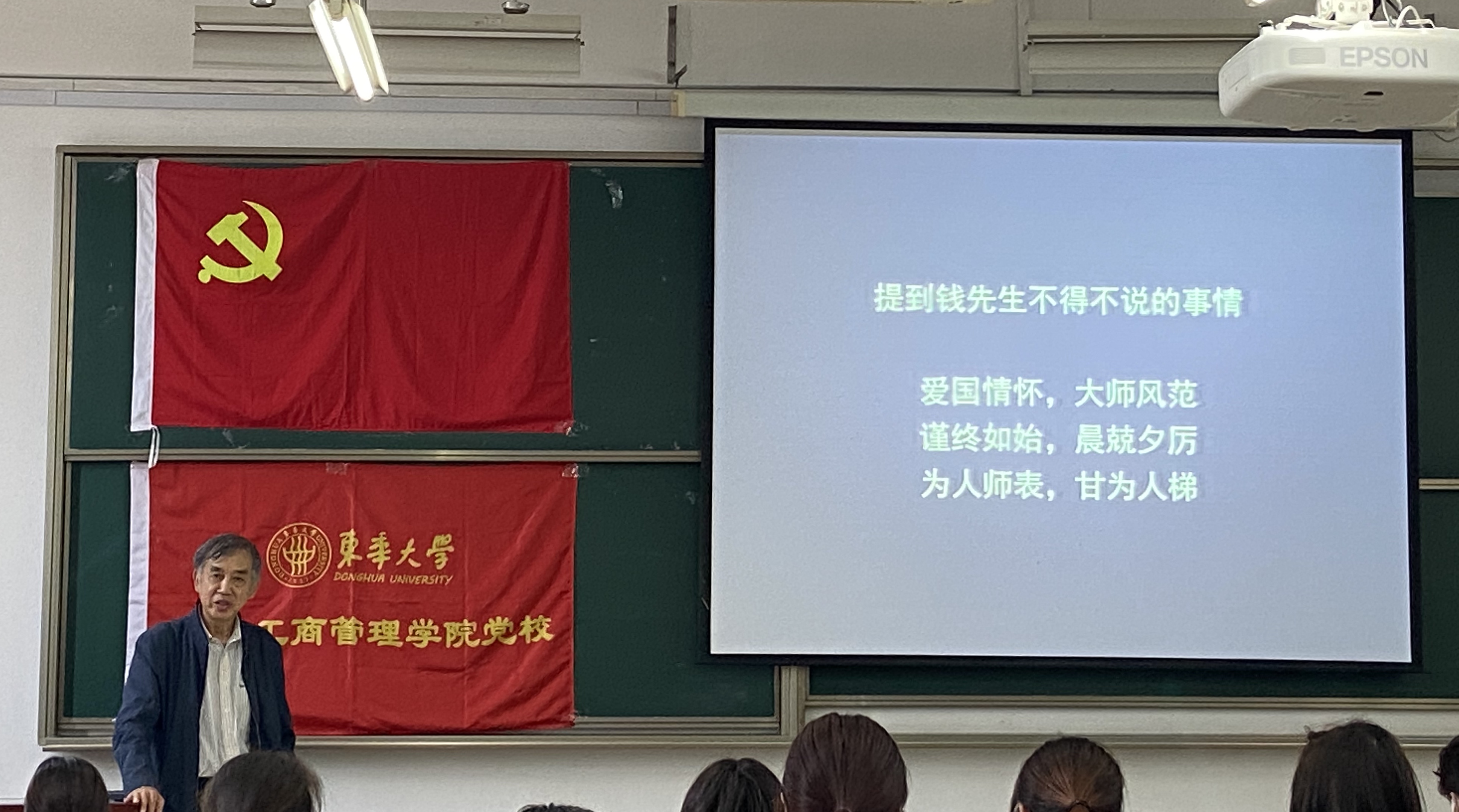 接下来又向我们讲述钱先作为一位学者,一位老师,一丝不苟,不辞辛劳的精神。钱老悉心指导学生成长,关注学生的素质教育和培养,成立“五爱奖学金”;为祖国培养了一批热爱祖国,忠诚教育事业的队伍。王老师向我们分享了他与钱老先生的故事,求学时期,他的论文,钱先生前后修改了三次;钱先生八十多岁高龄为了实验,晚上十点多还坚持亲自到实验室去。