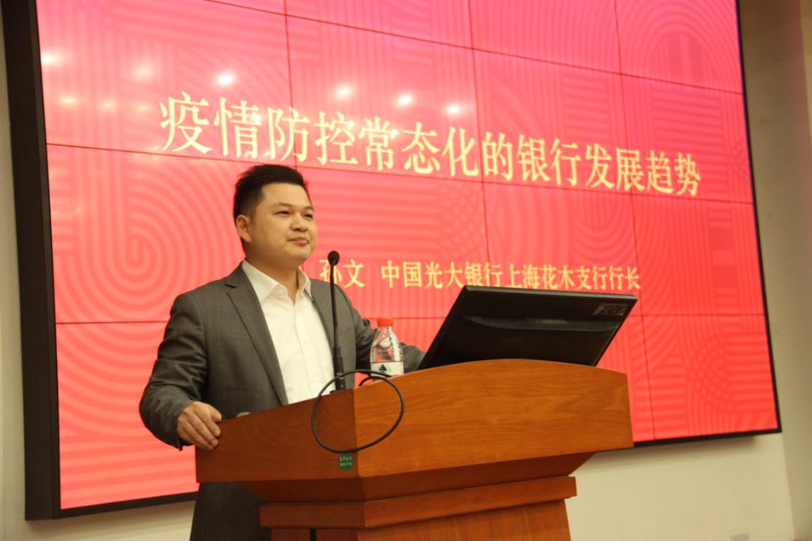 (中国光大银行上海花木支行行长孙文进行主旨演讲)