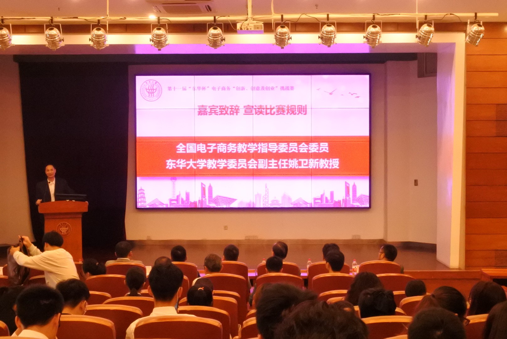 本次赛程历时一个半月,共49支参赛队伍进入校内选拔赛,于5月9日在东华大学旭日楼400拉开了选拔赛序幕。全国电子商务教学指导委员会委员、东华大学教学委员会副主席姚卫新教授致开幕欢迎辞,并宣读比赛规则。