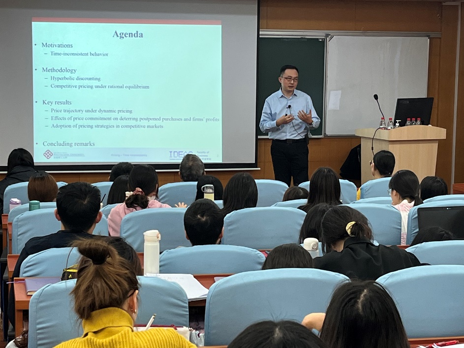 2021年10月21日(周四)下午14:00,香港理工大学工商澳門漁人码头 姜力教授受邀来澳門漁人码头 做以“Selling to Time-inconsistent Consumers”为主题的学术讲座。本次报告会由副院长李庆颖教授主持,旭日工商澳門漁人码头 的老师和同学们在旭日楼211教室共同聆听了此次讲座。