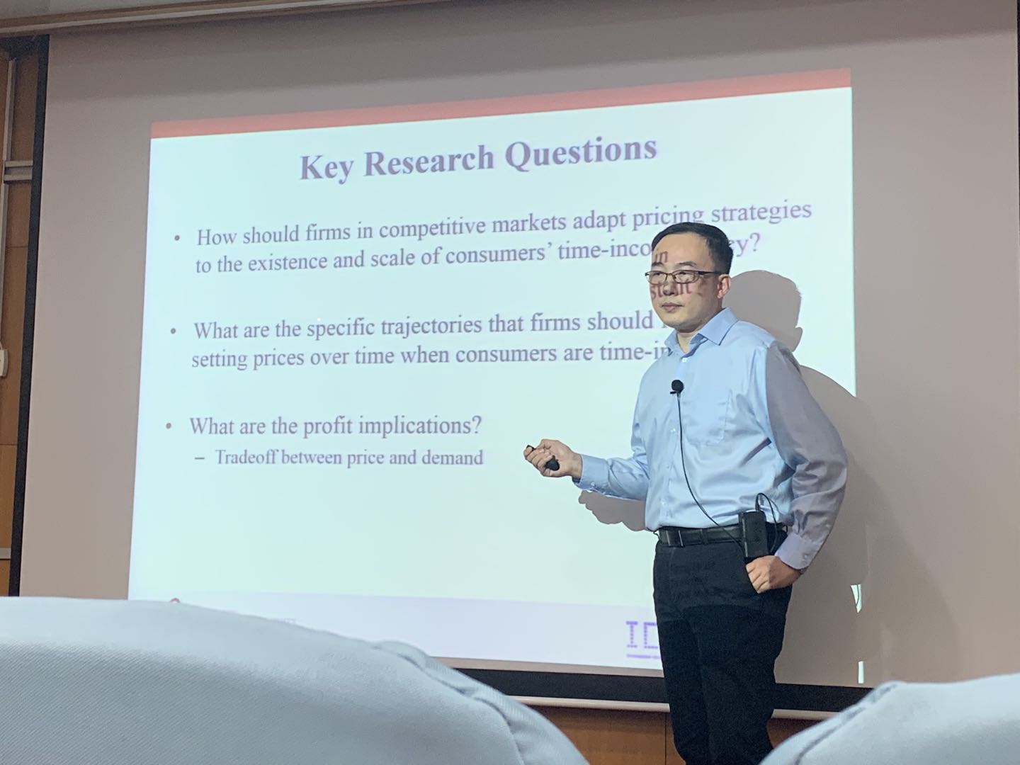 会上,姜老师首先通过生活中的例子以浅显易懂的语言向大家介绍了时间不一致性的概念及其现象。姜老师向大家详细介绍了模型建立过程,并分析指出一个公司应该采取符合消费者的时间不一致的程度和产品的质量的战略与价格轨迹。当消费者表现出更强的时间不一致性时,企业有更强的动机采用动态定价。静态定价并不总能有效地阻止消费者推迟购买,但却能削弱企业的利润。