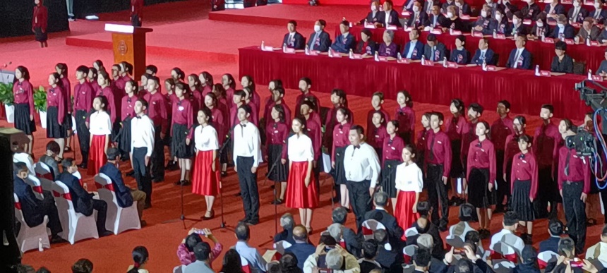 图5-1 李佳琪同学参与校庆大会学生献词环节