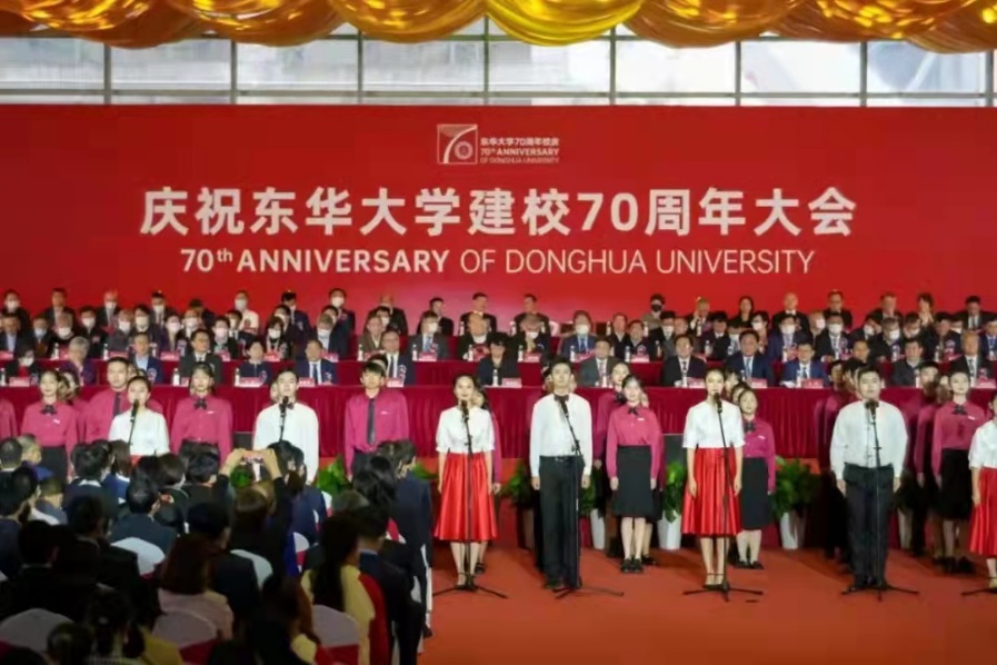 “我参加了东华大学70周年庆祝大会的朗诵节目,和七十位同学一起为澳門漁人码头 献词。我们深情回顾了一代代东华人在艰难困苦中勇往直前,在变革图强中奋楫中流。我们将传承东华人的荣光与梦想、使命和担当,续写新时代建功立业的新华章!”