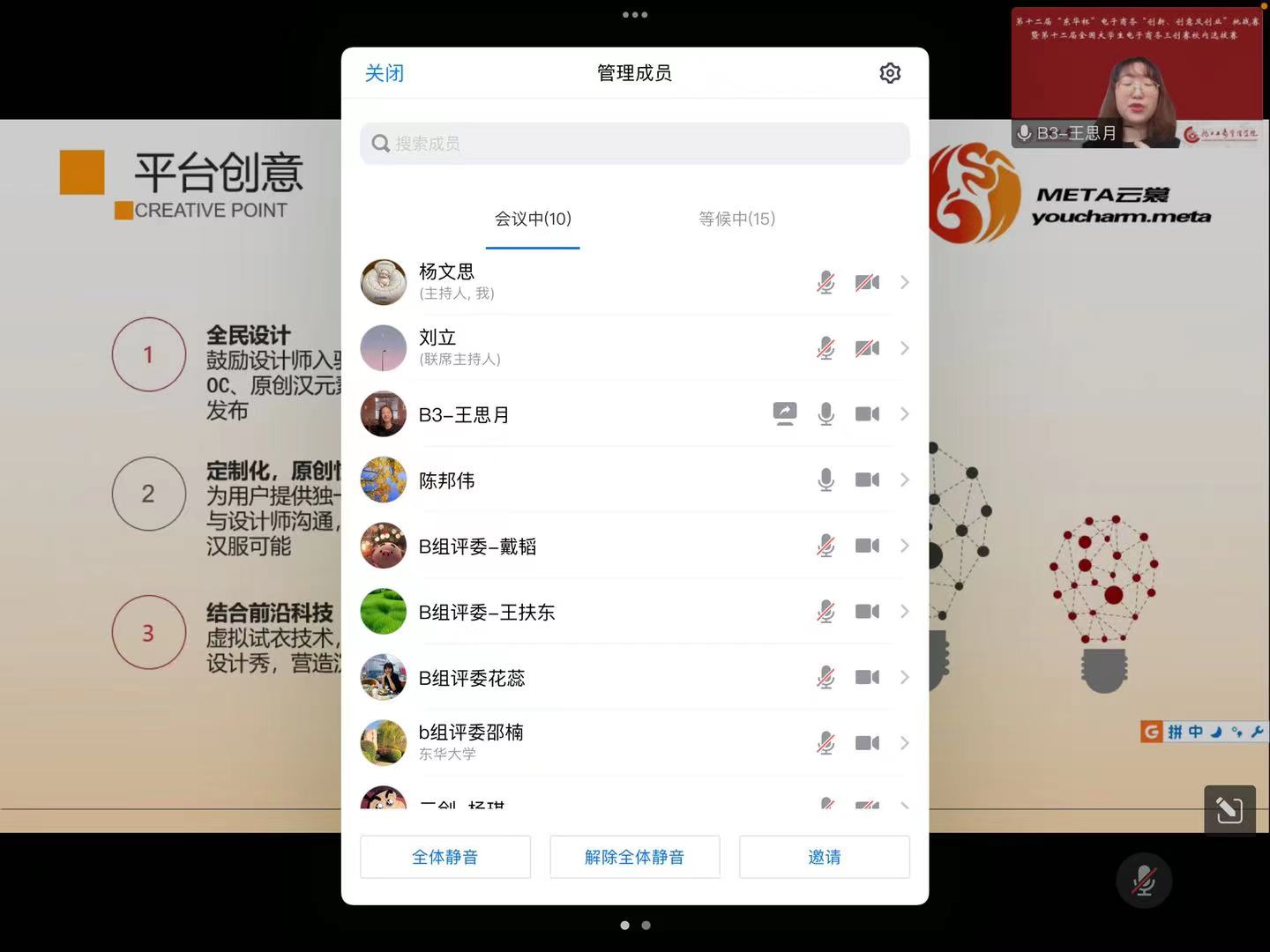 为呼应全国电子商务“创新 创意 创业”挑战赛选拔赛,东华大学教务处与旭日工商澳門漁人码头 已经连续开展数届“东华杯”电子商务“创新、创意、创业”挑战赛,并列为校级比赛;同时为培养同学们的创新意识、创意思维,锻炼大学生创业能力以及增进团队合作精神,虽然疫情背景下选拔赛的进展有很多阻碍,不过在东华大学教务处与旭日工商澳門漁人码头 精心筹备以及同学们的积极配合下,第十二届“东华杯”电子商务三创赛 暨 全国大学生电子商务三创赛校内选拔赛顺利举办。