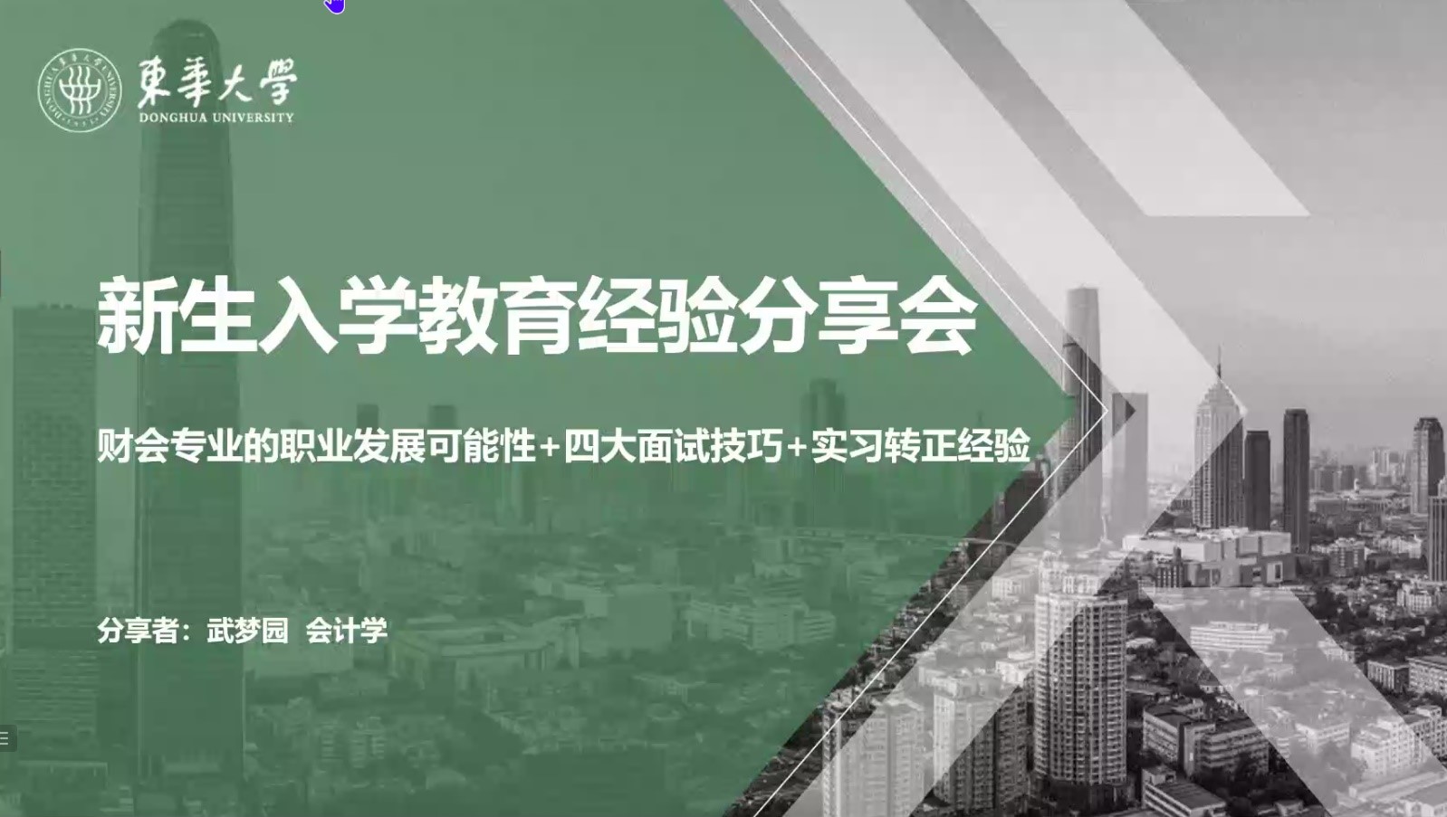 武梦园毕业后任职亿滋中国管培生,从财会专业的职业发展可能性切入,着重分享了四大会计师事务所的面试技巧和实习转正的经验。随后,给出三点职场建议,拒绝内耗焦虑,投身实践;由面到点,步步为营;更新技能,能力迁移。强调了在实习中向上管理很重要,要重点向上级展示核心能力。