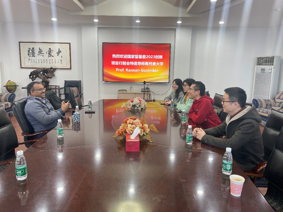 国家留基委创新项目特邀导师,Govindan教授和即将出访南丹麦大学的2位博士生亲切座谈,副院长沈滨教授主持了本次会议,并对Prof. Kannan Govindan的来访表示热烈的欢迎。
