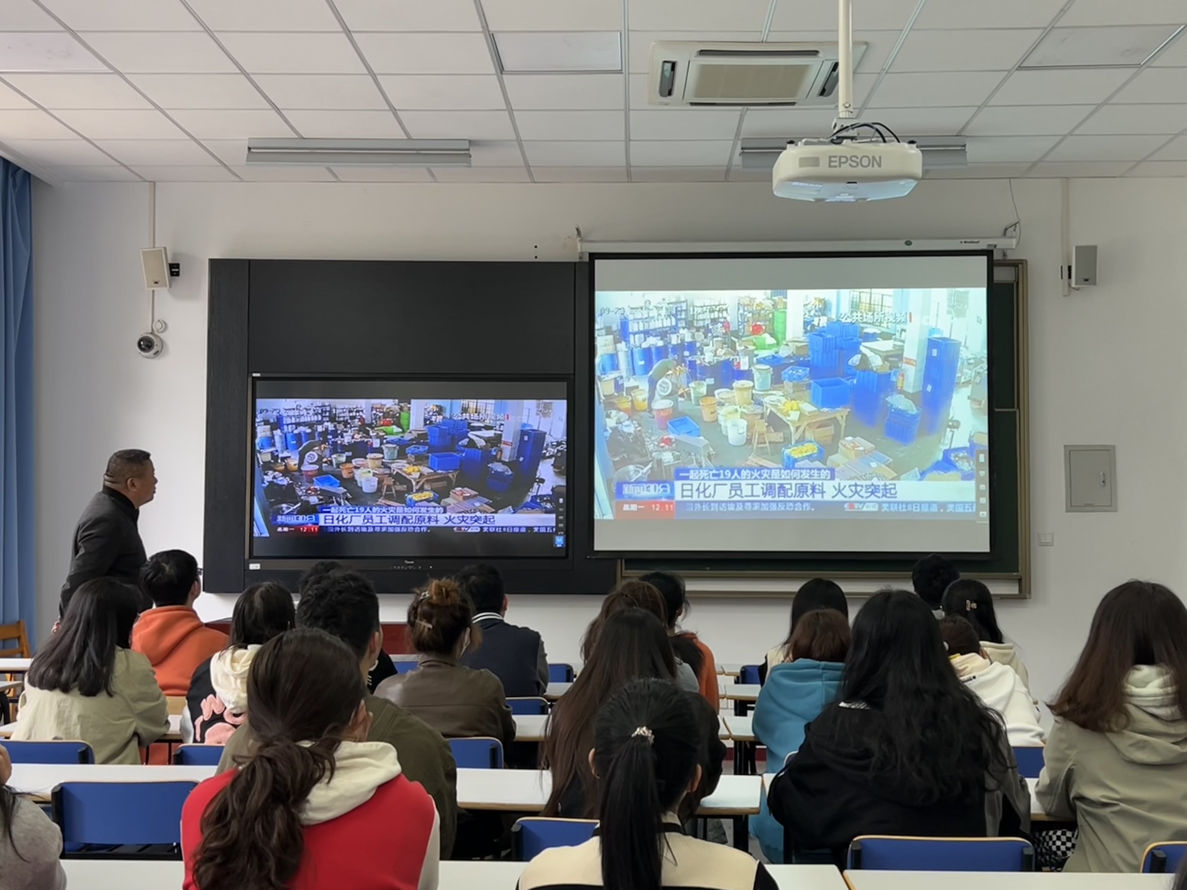 首先,保卫处消防科的吕老师为大家讲解了日常生活中可能存在的消防安全隐患,介绍了社会及高校中经典的火情案例,希望同学们可以从案例中吸取教训,不在宿舍公寓内使用违规电器,避免火情的发生。