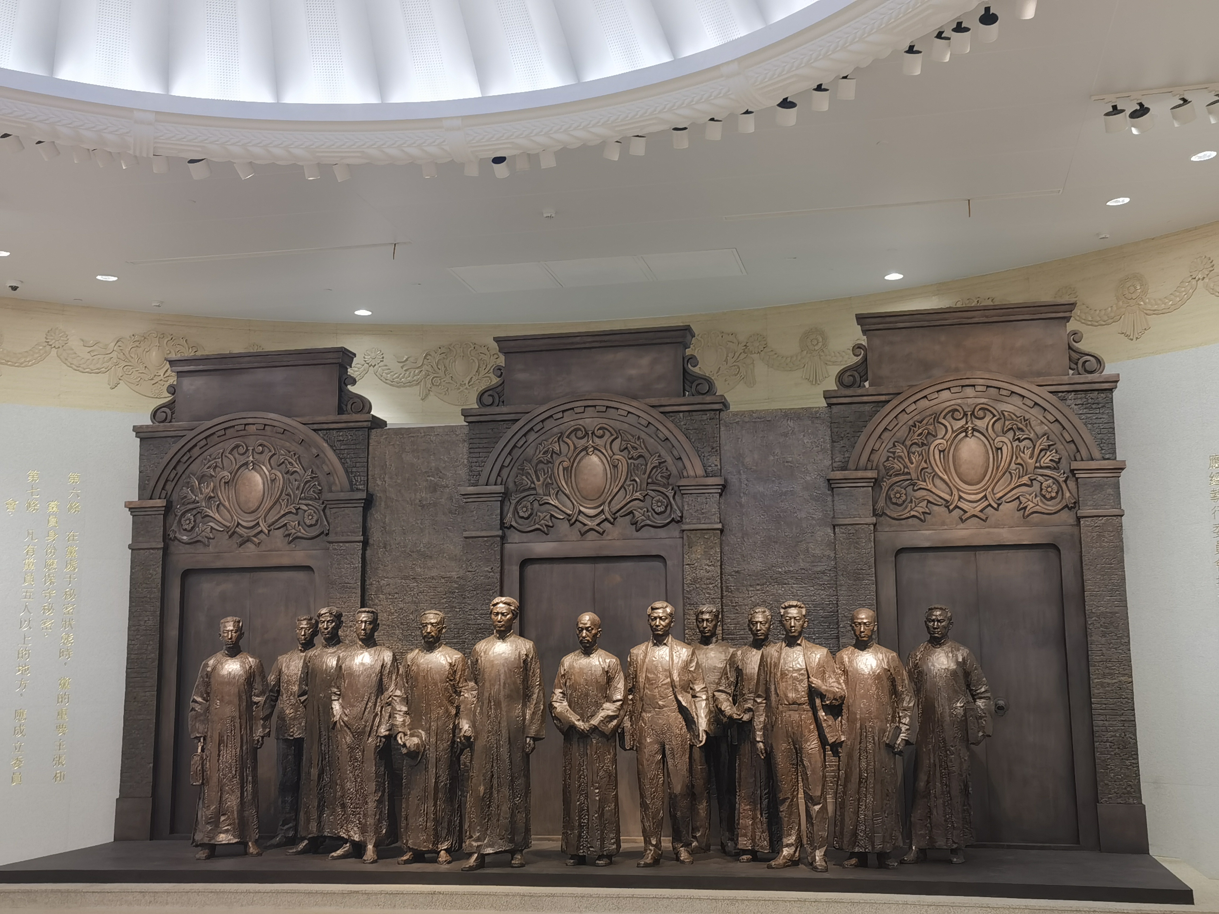 进入纪念馆展厅,映入眼帘的是中共一大的13名代表的铜雕,他们是那时平均年龄28岁最进步的青年,让人感慨,英雄辈出,却也大浪淘沙。伴随着讲解员的动情讲述,学员们在每个展览单元驻足聆听,聚精会神。《共产党宣言》首个中文全译本、李大钊同志使用过的打字机……纪念馆里陈列着大量的实物和图片,每件文物、每个情景都在“说话”,学员们手握这些开启探索中国共产党创建历史的密钥,仿佛回到了那个风雨如磐的年代,深入思索中国共产党诞生背后那些耐人寻味的故事。在这个中国共产党人的精神家园中,学员们循着党的来时路,寻中国共产党人的初心与使命。