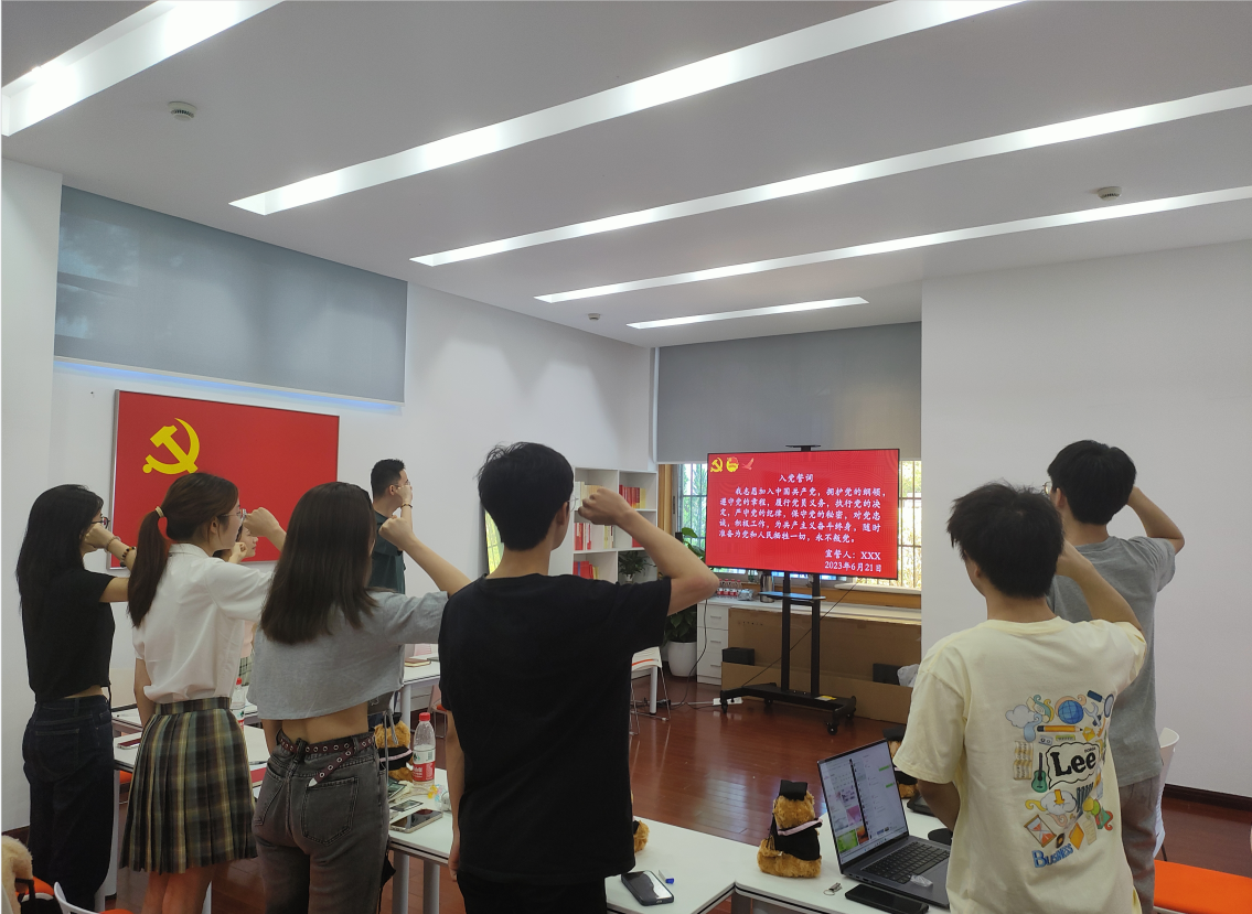 最后,沈嘉斌老师带领支部全体党员重温入党誓词,旨在勉励大家不忘初心,勇毅前行。即使毕业,共同的身份将继续凝聚大家同行,信仰的力量将继续伴随大家成长。