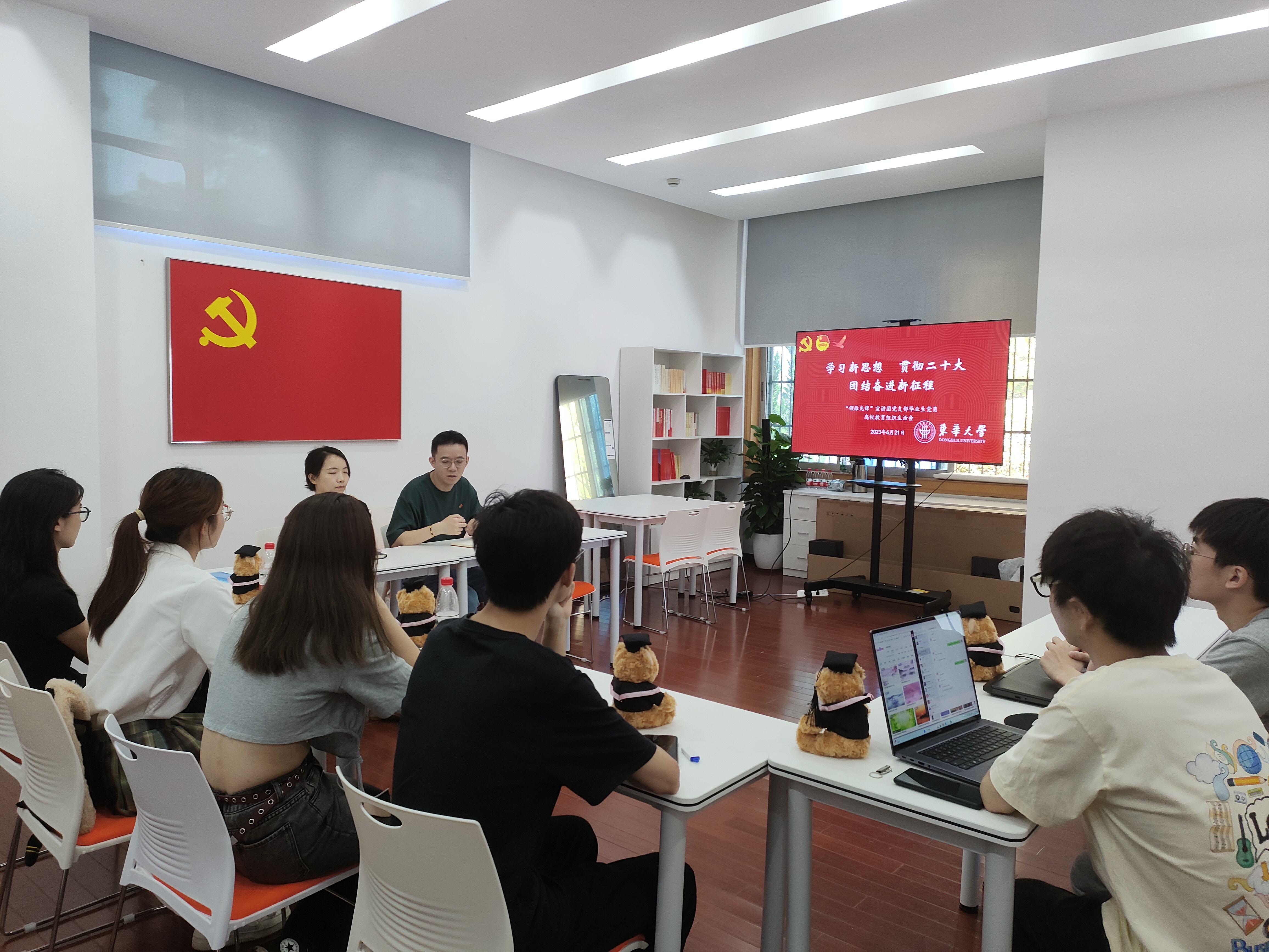 6月,一年一度的毕业季如期而至,离校不离信仰,毕业不散情谊。为继续推进主题教育常态化,勉励毕业生党员在回顾自身入党经历的基础上,在新的人生征程中不断奋斗,6月21日,“领雁先锋”宣讲团党支部以“学习新思想 贯彻二十大 团结奋进新征程”为主题开展毕业生党员离校教育组织生活会。