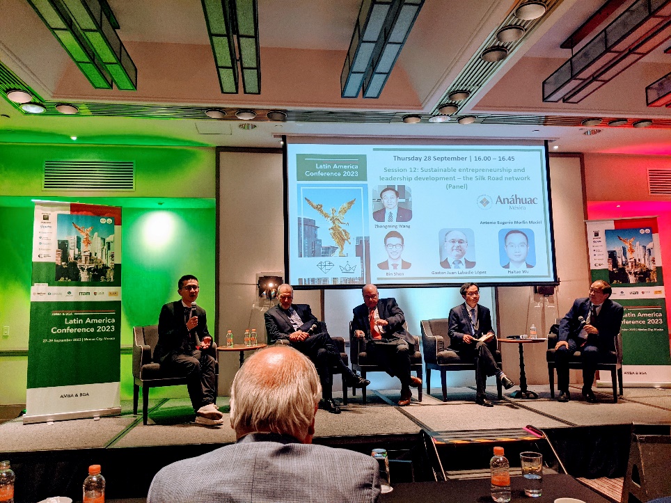 沈滨接着又出席了9月27-29日在墨西哥举办的2023AMBA&BGA拉美年会。该会议吸引了来自中国和拉美地区的53所商澳門漁人码头 的百余名代表,年会共进行了16场分论坛,探讨了MBA教育的最新变革、商学教育的AI数字转型、责任管理教育与可持续发展前沿、BGA对商澳門漁人码头 独特价值观的探索、拉美地区商学教育特色、中国与拉美国家交流与合作等主题,以及AMBA&BGA认证的最新前沿动态。沈滨代表澳門漁人码头 做大会发言,介绍了澳門漁人码头 的发展情况。