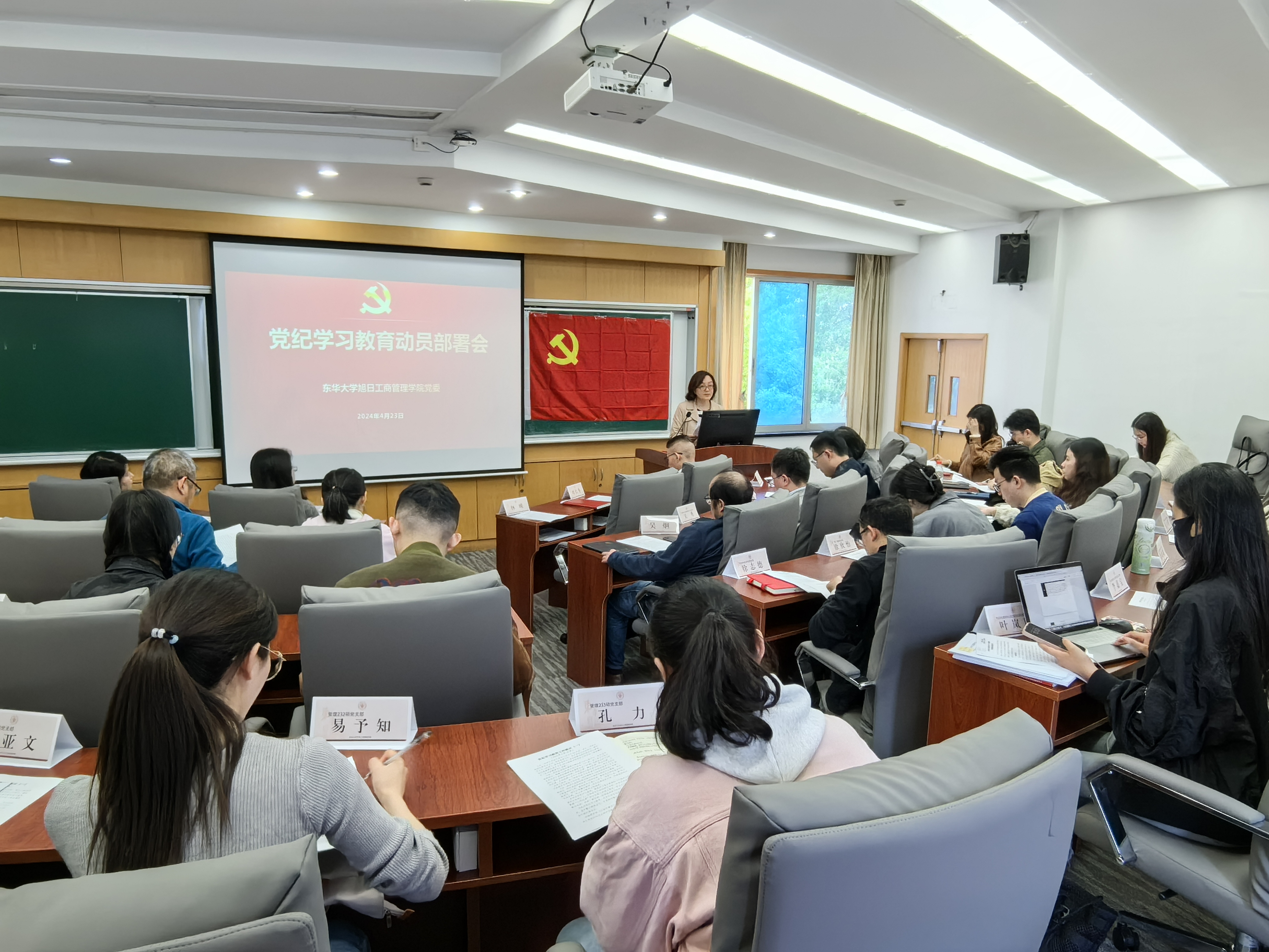 林嵘组织学习了习近平总书记关于党纪学习教育的重要讲话和重要指示精神,部署《中共东华大学委员会关于开展党纪学习教育的实施方案》相关工作。她指出,在全党开展党纪学习教育,是党中央作出的重大决策,是加强党的纪律建设、推动全面从严治党向纵深发展的重要举措。广大党员要深刻领会开展党纪学习教育的重要意义,把加强纪律教育作为深入落实全面从严治党要求、加强党的纪律建设的基础性、经常性工作,原原本本、联系实际学好党纪党规突出问题导向,强化系统观念,增强学习教育的针对性、实效性每名党员要用心学纪、知纪、明纪、守纪,领导干部要学在前、做在前,把遵规守纪刻印在心、践履于行
