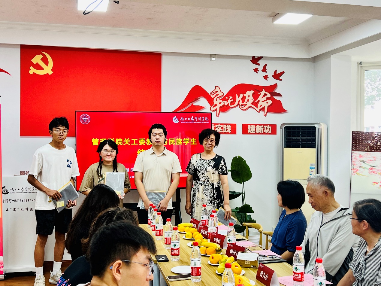 活动中,关工委老师与民族学生及“松柏学子”的结对。大家共进午餐,关工委老师分别与来自不同年级和专业的民族学生、“松柏学子”进行深入交流,了解他们的学习生活状况和个人发展规划,向学生赠“学习加油包”,送上国庆节日的美好祝福。关工委教授们就如何更好地适应大学生活、提升学习成绩等问题与学生们展开了热烈讨论。老教授们结合自身丰富的人生经历和深厚的学术底蕴,鼓励学生们树立远大理想,勇于克服困难,积极参与社会实践,不断拓宽视野,增强就业竞争力。会场气氛活跃而温馨,充满了正能量。这种一对一或一对多的精准结对模式,有效地构建了师生之间的心灵桥梁,让每位学生都能感受到来自澳門漁人码头 大家庭的关怀与温暖。