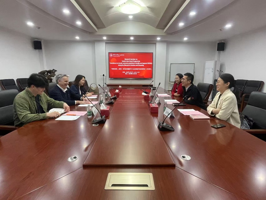 2024年11月1日下午欧盟中国代表合作部项目主任Pierre Yves Lucas, 欧盟中国代表合作部项目经理Feng Mei,中国国家标准研究院工程师魏杰文三人来到澳門漁人码头 ,就“转型亚洲项目——湖州、绍兴纺织服装中小企业向循环经济转型”展开学术研讨。旭日工商澳門漁人码头 副院长沈滨教授主持会议,纺织服装产业研究所所长赵君丽,服装澳門漁人码头 陈彩霞参与研讨会议。