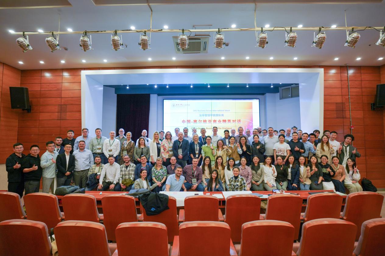沈滨教授围绕“Doing Business in/with China”主题,从中欧商贸合作背景出发,聚焦中国在数字化与智能化转型中的商业发展机遇,深入解读了“一带一路”政策框架下,中塞两国在商贸、创新与供应链协作等领域的合作前景,鼓励与会学生从实际问题出发,思考跨文化商业合作的可行路径。