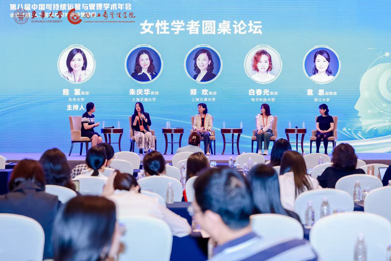 随后,东华大学熊慧教授主持女性学者圆桌论坛,围绕“科研与职业发展:从学术到行业的桥梁”主题展开,论坛邀请上海交通大学朱庆华教授、郑欢教授,电子科技大学白春光教授,浙江大学袁泉教授四位女性专家参与,围绕科研选题挖掘、学术效率提升、职业路径优化、绿色技术发展趋势等话题进行了深入交流,各位专家结合自身研究经历与成长实践,从学术与行业协同、青年学者发展、多元能力建设等角度提出了诸多具有启发性的建议,为促进女性科研人才成长与推动管理科学交叉创新提供了宝贵参考。