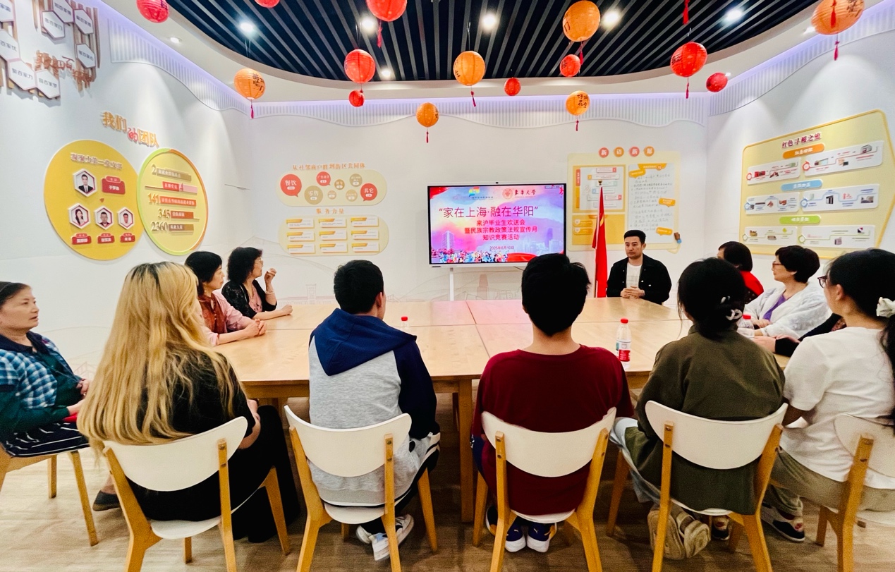 当端午节粽香遇上古尔邦节的欢歌,当毕业季的骊歌融入民族法制宣传的强音, 6月10日,“共庆佳节共学理论欢送毕业生”主题活动在【家在上海·融在华阳】(东华大学·华阳路街道)民族团结进步教育基地举行。街道干部、社区居民与各民族师生代表共聚一堂,通过节日共庆、理论共学、毕业寄语等形式,传递“中华民族一家亲”的最强音。